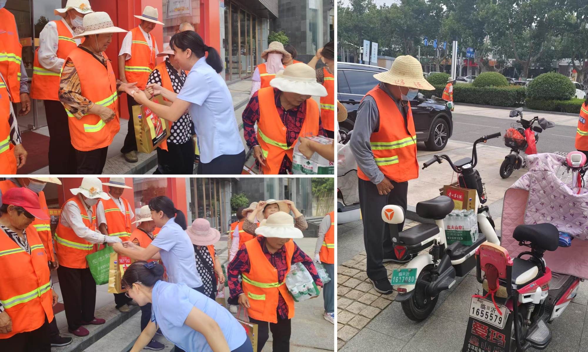 活動(dòng)當(dāng)天,專賣店工作人員早早的便將精心準(zhǔn)備的綠豆、白糖、礦泉水等消暑物資擺放整齊。隨著結(jié)束清掃任務(wù)的環(huán)衛(wèi)工人陸續(xù)到來(lái),工作人員將消暑物資送到環(huán)衛(wèi)工人手中,為他們?cè)诳崾钪袔?lái)一份沁人心脾的清涼。